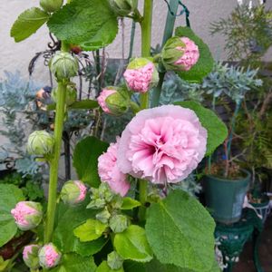 こんにちは ピンク🩷の八重咲きタチアオイが、 くっつきすぎじゃない⁇ってほど びっしり咲いています 花が大きいので ボトボトと落ちてきます😀🌸