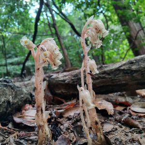シャクジョウソウ(錫杖草) ツツジ科 シャクジョウソウは淡黄色(クリーム色)で1茎多花 ギンリョウソウ・ギンリョウソウモドキは白色で1茎1花👻 緑の葉のない植物で光合成を行う葉緑体を持たない。 木の根についた菌類から養分を吸収している菌従属栄養植物です。 *腐生植物(腐植質を分解して栄養を得る)では ありませんよ〜 木々たちがこのような植物や苔、きのこ、昆虫などと共生しているからこそ、豊かな森が保たれてます🌳🌲🍄🍄🟫 陽の光のあたる場所ではなく、森の中、暗い樹林帯で見かける。 *名前の由来は僧や修験者、弁慶も持っている錫杖に 似ているから🧌😅 ギンリョウソウは低山で良く見ますが こちらは2年前の八ヶ岳以来、久しぶりの出会いでした✨
