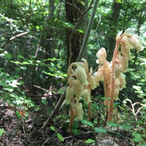 6 Aug, 2019 シャクジョウソウ-錫杖草- (イチヤクソウ科) ギンリョウソウと同じ場所に生え、多数集まった群生し、淡黄色。茎の先には数個の花をうつむかせて付けます。 お初にお目にかかり感動しました♪