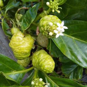 おはようございます(^^)今日は朝電車で時間がありましたので投稿したいと思います。 いつもの時間くらいにもまたするかも〜しれませんし、しないかも〜しれません(笑) さて、写真の方ですがなんだと思いますか? 1度は耳にしたことのあるフルーツだと思います。 正解はあのクソまずいことで有名なノニです! 和名をヤエヤマアオキと言います。 収穫したらYouTubeで食レポ動画を共有しようと思うのですが、今から緊張しますね😅 それでは今日も学校いってきまーす👋