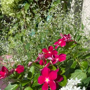 ペンタスとニチニチソウをお迎えして♡ 1ヶ月経ちました・*:..。o♬*゚・* 5月に小さな苗で頂いたユーフォルビアも ふわふわと他のお花たちをやさしく 包んでくれています・*:..。o♬*゚・*
