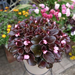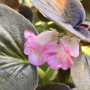 ベゴニアダブレット ピンク このつやっつやの銅葉の間から覗くピンクのまぁるい花がたまりません😆 別の色も居るんだけど今のところこの子が一番まとまり良いです