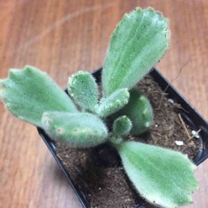 こちらは札が無かったのですが、熊童子の斑入りかなーなんて思っています。 本で見て可愛いと思っていた子。土被ってたし、もうちょっとわさわさしてて欲しかったけど、お安いし出会いが大事!ってことで連れてきちゃいました。 モケモケの子たちってついつい触りたくなる〜