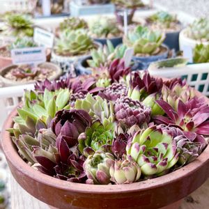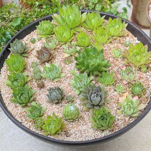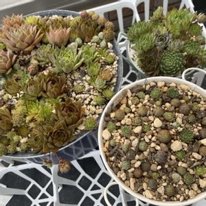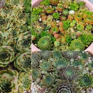 センペルンルン木曜日🎶 わが家のセンペルビウムたちです😊 一枚目は、四月に植え込んだセンペル丼で、五月八日の投稿と比べて随分モリモリしてきました♪ 二枚目はレッドビューティー、三枚目はブロンコ、四枚目は大巻絹、最後はテクトラム(ハウスリーク)です。どれも成長速いですね😅💦 丼の品種は、中央がダイナモ、上の白っぽいのが夕山桜、時計回りに、ブラウニー、ジュディローズ、サマーフロスト、赤巻絹、です。 わが家のセンペルビウムは、これで全部です、と書きかけて思い出しました😅種から育てている最中の、ヒッピーチックスという品種があります。沢山発芽はしたのですが、暑くなってから急速に減って来て、果たして育つのか、怪しくなって来ています💦もし育ったら、後ほどご紹介しますね〜