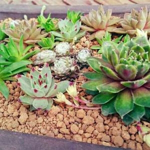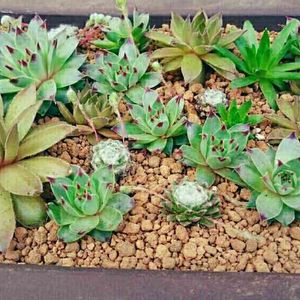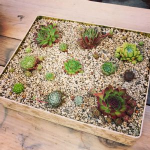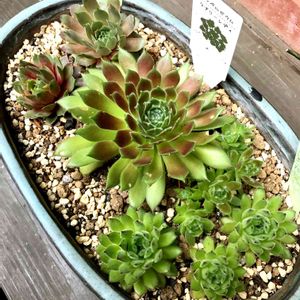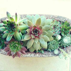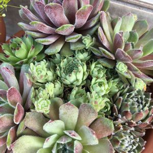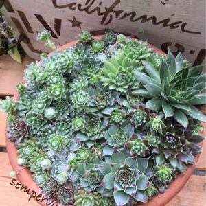 センペルの寄せ植え。 センペルビウムが三種類入っています。 植え替えしないといけないものがたくさんあるのに なかなかできない😩