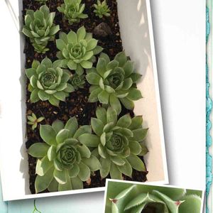 ちょうど2ヶ月前 空き缶に寄せ植えしたセンペル ミドリ一色になりました 大きくなっていい感じ…💕