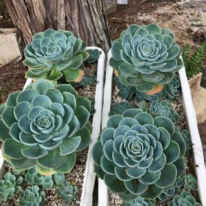 パシフィックシリーズで寄せ植え♡︎ どれもみんなかわいいです ( › ·̮ ‹ ) 使ってなかった木箱、意外に簡単に穴が開けられたので、ようやく使うことができました♩︎ 文字も薄くなってたので、適当になぞっておきました。(しかも植えたあとに気になってペイントしましたw)