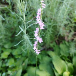 「ギボウシ ゴールデンティアラ」 咲いてます😁 どの角度でも撮すの難しい 顔あげてくれればいいけど、恥ずかしがり屋さんなのか😄 ネジバナ 本数ふえてる🩷 そしてバッチリ色付いて可愛い〜
