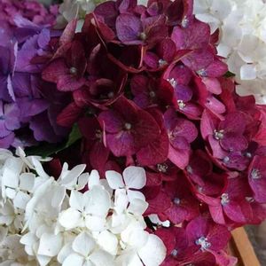 三人の友達からもらった 色々な紫陽花 綺麗😍😍😍 3本の花瓶へいけた 一色もいいけど 色違いも綺麗ね♪ヽ(´▽`)/