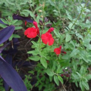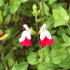 鳥のような花で検索して名前がわかりました🙂 メキシコ原産で「サルビアのミクロフィラ種」の中の「ホットリップス」(Hot Lips)のようです。🤗
