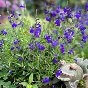 サルビア ミクロフィラ グレッギーブルー💜💙と🐸 今日は一日大雨ですね☔️