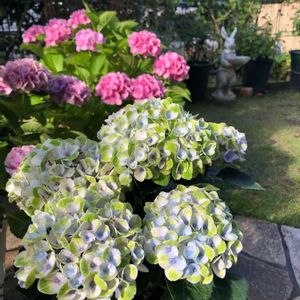 おはようございます☁️ 今日のお花 アジサイ💠 マジカルアメジスト🩷💜💙💚 地植えにしてお花も増えてきました(^^♪ ウチの庭 酸性土だと思っていたのに 変わってきてる気配🩷 いろんな色を楽しめますね( ˆОˆ )♪
