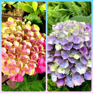 アジサイ マジカル ⬅️2018年 お迎えした時の花色 ➡️今の花色 ずっと鉢植えです 植え替えもしてないです 昨年までは左の色合いで咲いていたのですが、今年は全く違うのです( ;;º дº)<エェェェエエェェェ 元々の色合いの咲き始めから終わりまでに、今年の色は一度もありませんでした 謎ですね〜(?_?) でも、この色合いは好きなのでちょっと嬉しいかも(*≧∀≦*)