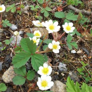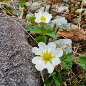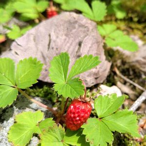 15日はいちごの日 1⃣ ノウゴウイチゴ(能郷苺)バラ科オランダイチゴ属 花は径15-25mm、花弁、萼片ともに7-8枚 北海道黒岳に咲いてました。 6月25日 2⃣ バライチゴ(薔薇苺)バラ科キイチゴ属 別名 ミヤマイチゴ 1400m富士山に咲いてます。 7月12日 3⃣ バライチゴの咲きかけ 4⃣ 苔の中のシロバナヘビイチゴのお花 6月5日 5⃣ シロバナヘビイチの実 7月12日 オランダイチゴ属なので食卓のいちごと同じ形です。 想像より甘くなかったです。 🏷 毎月15日はいちごの日