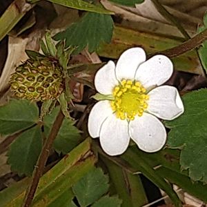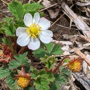 今日のお花 ノウゴウイチゴ(能郷苺) *バラ科オランダイチゴ属 花期は6〜7月 果期は7〜8月 北海道〜中部地方以北の山地〜亜高山の湿った草地や林縁に生える多年草! 太い根茎から匐枝を伸ばして新苗を作る。 根生葉は3出複葉! 小葉は倒卵形で鋸歯は4-6対! 花は白色で10〜25mm! 花弁は7〜8個! 似たシロバナヘビイチゴの花弁は5個で鋸歯は5〜12対! 名前は岐阜県の能郷白山で発見された事から! この時は少し前に八幡平で花を見て、ここ尾瀬では果実が色付いていました❣️ 2024.6.15撮影