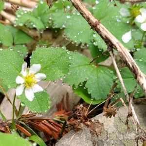 ノウゴウイチゴ(能郷苺) *バラ科オランダイチゴ属 花期は6〜7月 北海道〜中部地方以北の山地〜亜高山の湿った草地や林縁に生える多年草! 太い根茎から匐枝を伸ばして新苗を作る。 根生葉は3出複葉! 小葉は倒卵形で鋸歯は4-6対! 花は白色で10〜25mm! 花弁は7〜8個! 似たシロバナヘビイチゴの花弁は5個で鋸歯は5〜12対! 名前は岐阜県の能郷白山で発見された事から! 見てみたいと思っていたノウゴウイチゴにやっと出会えました! 大きめの花はとても愛らしいのが良く分かりました❣️ 6月7日撮影