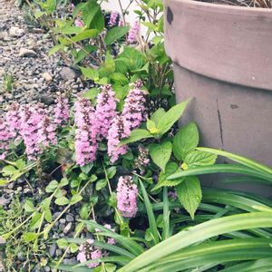 去年植え付けたアジュガが増えました。 ピンク色がかわいい💕