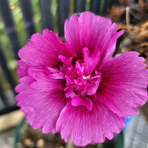 ❤️アルセア スプリングセレブリティ❤️𓂃 𓈒 矮性のタチアオイが4つめの花を開花させてます! まだ上の方にはつぼみが🤗 寒さしのぎに針金で囲ってビニール袋被せてますが 最近は暖かくてビニールもあげたまま☝️ 冬なのに、まさかの開花が嬉しいです✨