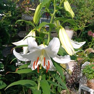 直近で咲いた花色々✻*˸ꕤ*˸*⋆。✻*˸ꕤ*˸*⋆。 ①カサブランカ 特大級の球根を買って初開花です✨ 1輪がすごく大きいです。 鉢が小さかったので心配したけど、今の所は大丈夫そうです。 ②アルセア・スプリングセレブリティーズのアプリコット 種からです🌱なかなか蕾が付かなくて花は見れないかもと思ってたので、咲いてくれて嬉しいです♪ ③アルセアの横のケラトテカとカラミンサも最近咲きました。 ケラトテカは種から。カラミンサは4.5年目の株です。 ナチュラルな姿がお気に入りです🍀