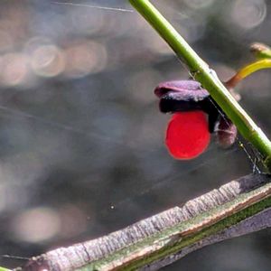 こんにちは☀ 青森県始め三陸沖の大地震に お見舞い申し上げます🥹 余震にもどうぞお気を付けて下さい🙏 昨日花友さんの錦木の紅葉の お写真を拝見して 私もと庭の境界際の錦木を 見に行きました 杖を忘れてしまって こここそ杖の必要な段差の激しい場所で ちょっと不安でしたが エイッと行ってしまいました その甲斐あって? もう葉は全部落ちてしまっていたものの 可愛い赤い実が僅かに残っていました ついつまみたくなるような実でしたが 調べてみるととんでも無いことでした トリグリセロールと云う有毒成分があり 鳥は大丈夫でも人間は絶対口にしては ダメたそうですよ! ニシキギ科の落葉低木