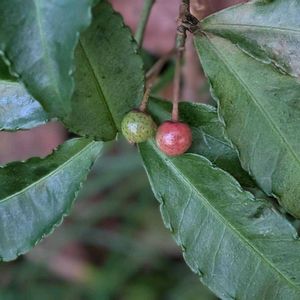 こんにちは☔ 庭のあちこちの実が楽しい季節… お正月に向かって真っ赤になって行く万両は 今アプローチで色々な色付き… ①は赤と緑で可愛い イヤリングやブローチにいいかな? 🏷️グリーンアクセサリー♪ 小屋の段々花壇の藪蘭も もう実が落ちてしまった株もありますが 緑だったり真っ黒だったりの ピッカピカの実… ⑤の1粒は緑から黒に変わる途中 散々見て写しているのに 初めて見ました!