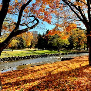 札幌の中島公園⛲️に行って来ました🍂🍁 オレンジ色の紅葉絨毯が綺麗ですね🎶 青空☀️が気持ちいい〜(*´ч`*) 北大のイチョウ並木と迷いました🤔🙄 が、中島公園⛲️にしました 都心の紅葉も素敵🍁ですね〜💓