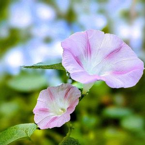 こんにちは☀ 今日も 爽やかな良いお天気! 朝顔さん 優しいピンクと 深い紫の 大輪朝顔が咲きました