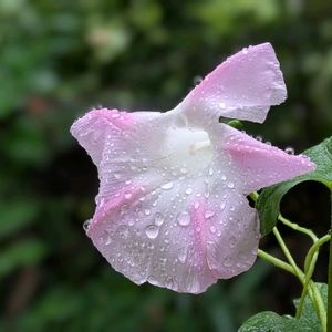 こんにちは☔ ピンクの朝顔さん 雨で花びらも切れて ずぶ濡れになりました そばの苧環の葉にも大きな雨粒… 今月も宜しくお願いします 日本全国穏やかで ステキな秋になりますように🙏