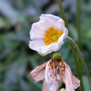 こんにちは☔ 大雨で今朝は朝顔も咲けません 線状降水帯の恐れのある地域の方は よくお気を付け下さいね!🙏 ❁昨日白い秋明菊の2番花が咲きました 1番花の花殻は 綿毛を楽しみにそのままにします 先日写したヨコバイは その後葉裏(左)の幼虫も写しました 🌿キンポウゲ科イチリンソウ属 ❁ドッグラン周りの花壇の孔雀草の蕾も 少しずつ膨らんでいます 今年も1本だけですが 何とか大好きな清楚なお花を 見せてくれますように! 🌿キク科シオン属