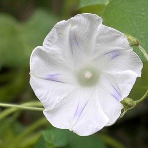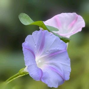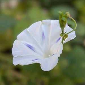 こんにちは🌧️ 小雨の今朝 白とブルーの朝顔が咲きました 蕾は明日何色に咲くかしら?