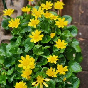 🍀ヒメリュウキンカ🍀 このブロック塀の一角だけが ヒメリュウキンカが育っていい場所です、 気を許すと蔓延ってしまいますからね〜😅💦💦💦 花が終わると引っこ抜いているぐらいが丁度良い加減です。🤗🎶🎵