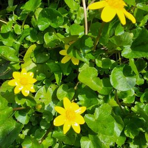 ヒメリュウキンカ 道端に増え始めており、どこかの庭から逃げ出したと見えるf(^^; 花弁の枚数が5枚と書いているサイトもあるけれどおそらく属の違うリュウキンカの書き誤りで、それはそんじょそこらでは出会う花ではないですねf(^_^; 右下は花が終わり、ガクも花弁も脱落した丸坊主の姿で 月曜日にビタミンカラー🏷️
