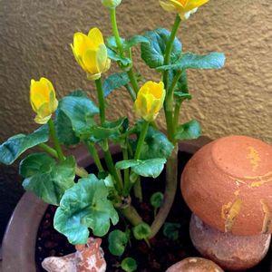 株分けして貰ったヒメリュウキンカが、雨☔️で全ての組織を生き返させている! 今日は恵の雨ね 気温は16度 風が強くなりそうなので、鉢を移動させました☺️