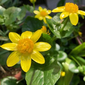 奥の庭で… ツヤツヤのハートの葉っぱ💚と 黄色い花色が可愛い ヒメリュウキンカが咲き始めています🌼 お日さまが当たってツヤツヤ輝いてみえます(﹡´◡`﹡ ) ☆ガーデンメモ☆ (立金花) *湿地の水辺 *春に芽吹き5〜7月開花 *冬は地上部は枯れていて土の中で越冬 *草丈15〜50センチ *キンポウゲ科リュウキン属 (姫立金花) *やや湿った林、畑など普通の土壌 *秋から冬に芽吹き夏は地上部が枯れて休眠 し3〜5月に開花。 *草丈15〜20センチ *キンポウゲ科キンポウゲ属(ラナンキュラス属)