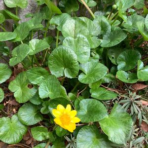姫立金花(ヒメリュウキンカ) とっこ様から教えて頂きました😊 ありがとうございました🙇♂️ 前に借りていた駐車場近くの お宅の人に何種類かお庭のお花を 頂いた中で、過酷な我が家の庭で たった1つ生き残った花です。 花が終わると、しばらくして 葉も消えて無くなりますが 毎年、必ず花を咲かせてくれます^_^