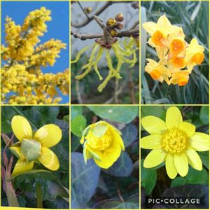 3/5(木)③ GS散歩してきました。 ミモザ、マンサク、黄水仙 ヒメリュウキンカ 黄色い花のコラージュです🤗🎵 ヒメリュウキンカは花びらが開く過程が判って興味深かったです。咲き初めの花びらの裏は黄緑色なんですね。