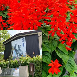 おはようございます! ボランティア花壇のサルビアは 毎年見事です! 1964.10.21東京オリンピック 銅メダリストの円谷選手の メモリアルパークです🍀 今年も10月17日 メモリアルマラソン大会が 開催される予定です🙋♀️ 東京オリンピック🎌 クライマックス応援しましょう🏃♂️