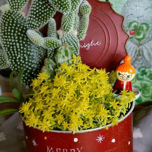 ( *ˊᗜˋ)ノこんにちはꕤ*.゚ 🏷️ムーミンの日! 🌵と多肉セダムさんの寄せ植えです。いつも登場するミィーさんのスタンプで〜す。間にあって良かったで〜す。🤭 🏷️今日のお花! 💙色のカーネーションです。過去picから〜 誕生日記念で、貰ったから、残ってました。(笑笑)