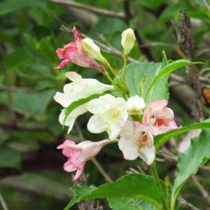 うちのベランダではとっくに花を落としてしまったハコネウツギも、忍野ではまだ花盛り😃