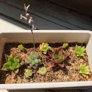 我が家のハオルチアさん達 お花咲きました❁ プランターじゃなくて、個別の鉢にしたい! でもアパートの狭いベランダの為、もう少し成長するまで我慢(´△`) ちっちゃいのは、先日まで水耕栽培でした! 根は出たけど、成長出来るかな?🤔