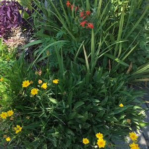 こんばんは 紫御殿💜(パープルハート) (セトクレアセア) クロコスミア❤️(モントブレチア) (ヒメヒオウギズイセン) 金鶏菊💛(コレオプシス)