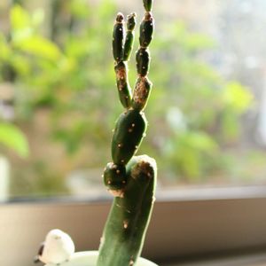 何気にまた増えてる| ε:) ニョキ いつもは冬に子株出さないのに 出しちゃうわ痩せてくるわで全くオネンネされてないようだから お水ドバっとあげたわさ🚰 すぐ太ったね〜(⸝⸝・༥・⸝⸝)😆 🌵サボテン科オプンチア属 墨こけし