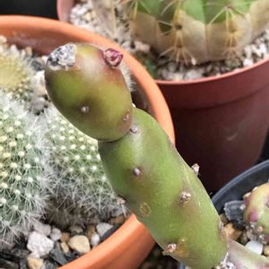 🌵👑⁈ エェェエェ‼︎ナニコレΣค(°ㅅ°ค(°ㅅ°ค(°ㅅ°;)💦━━!! 推しサボの墨コケシちゃんから花芽かと思ってた物がどんどん変化して、得体の知れない物体になっとりました💦 もしかしてコレは新芽だったの⁈ 丸くない墨こけし、嫌やーーっ💦 コレはなんなーーん😭⁈ 見たことない形状…(꒪ᗜ꒪ ‧̣̥̇) 知ってる方、教えてください🙏 ※追記 教えていただきました😆どうやらそのうち形が整ってくるようです😅一安心(。-∀-)٩形状変化、楽しみです♫
