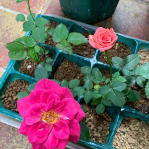 おはようございます 交配したミニ薔薇 あっという間に開いてました ピンクとオレンジ