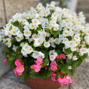 もう10年程、毎年咲いてくれてます🤍💖 昨年一昨年と、ピンクの勢力が優っていました💕今年は逆転の白✨🤍 本当は赤 白 ピンクの三色を寄せ植えしたのですが、いつの間に2色だけになってしまいました❤️🤍💖 寒くなったらバッサリ✂️ 凍らせない❗️ ほぼ手間なく毎年綺麗に咲いてくれる✨ 強い強いベゴニアです😊🌿🌸