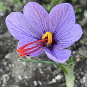 おはようございます♪ ♡今日のお花♡ 💜サフラン💜 アヤメ科クロクス属(サフラン属) 開花期10〜12月 秋植え球根 3本の雌しべは乾燥させて、香辛料や染料や薬用として使われます。