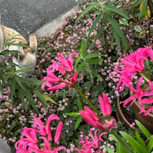 散歩道のお花🐕🐾 💕ネリネ💕ヒガンバナ科 💕ヒメツルソバ💕タデ科 🍁モミジ🍁ムクロジ科