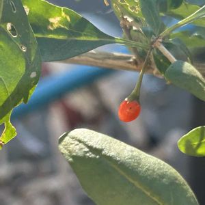 散歩道の公園に枸杞の実が一つ ❤️枸杞(クコ)❤️ナス科クコ属 果期9〜11月