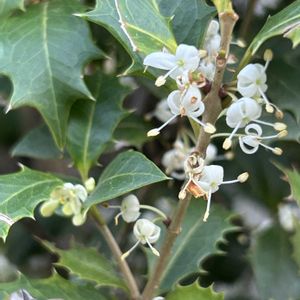 おはようございます♪ 散歩道に咲いてます 🤍柊(ヒイラギ)🤍 モクセイ科モクセイ属 常緑小高木 雌雄異株 🍃若葉のうちは葉のトゲが多いが、老木になるとトゲは次第に先端だけ尖って縁は丸くなっていきます 雄株‥雄花は2本の雄しべが発達して、雌しべは小さくて目立たない、公園などで見られるはほとんどが、雄株のようです