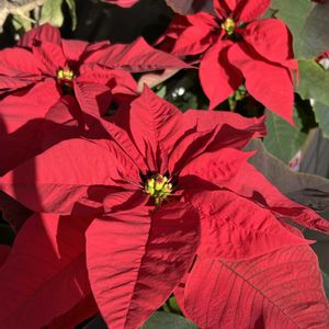 おはようございます♪ 散歩道のお花🐕🐾 ❤️真っ赤な火曜日❤️ ❤️ポインセチア❤️ トウダイグサ科トウダイグサ属 赤い花びらのようなのは苞(葉が変化したもの)で花弁を持たない黄色い小さな集合体です